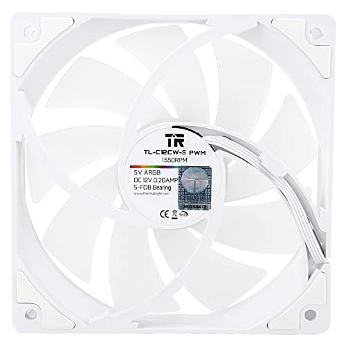 Thermalright TL-C12CW-S Ventola CPU 120mm bianca ARGB, ventola per computer silenziosa a 4 pin PWM con cuscinetto S-FDB incluso, ventola di raffreddamento fino a 1500RPM (3 quantità)