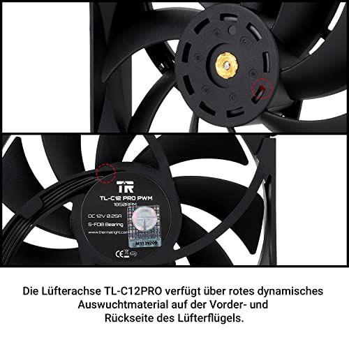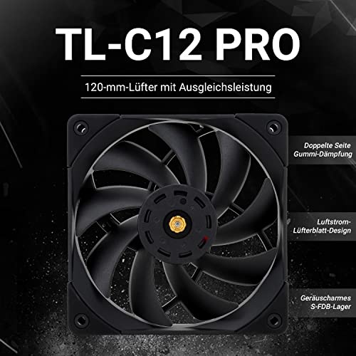 Thermalright TL-C12PRO - Ventilatore per CPU da 120 mm, S-FDB Bearing, ventola per computer per controllo PWM, 1850 RPM di Performance Airflow Fan (nero)