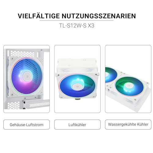Thermalright TL-S12W-S - Ventola per CPU da 120 mm, ARGB, connettore PWM, ventola silenziosa per computer con cuscinetto S-FDB, fino a 1500 RPM (confezione da 3)