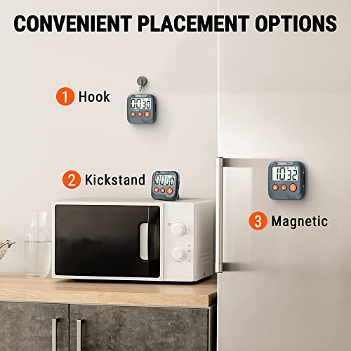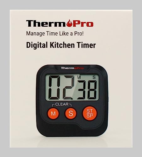 ThermoPro TM03W Timer Cucina Digitale Timer da Cucina con Grande Display LCD Grandi Cifre Allarme Volume Timer Regolabile Orologio Conto alla Rovescia Multifunzione