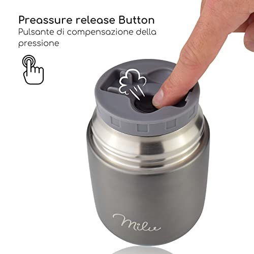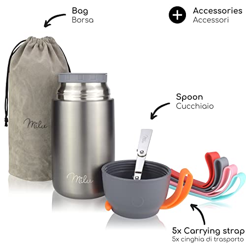 Milu Thermos per Alimenti I 450ml / 650ml / 800ml I Contenitore Termico di Acciaio Inossidabile, Isotermico Sottovuoto per Cibi Caldi e Freddi (Grigio, 800ml)