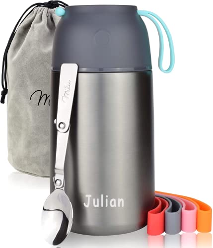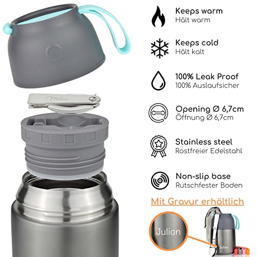 Milu Thermos per Alimenti con incisione I 450ml / 650ml / 800ml I Contenitore Termico di Acciaio Inossidabile, Isotermico Sottovuoto per Cibi Caldi e Freddi (Grigio, 800ml)