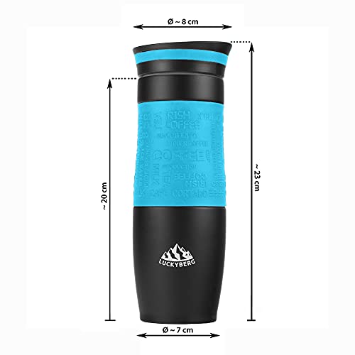 Thermos da viaggio, con isolamento a vuoto d'aria, apertura ad una mano, doppio parete, a prova di goccia, per bevande calde e fredde, da 480 ml, blu scuro, Acciaio inossidabile, Blue, 9cmX24.5cm