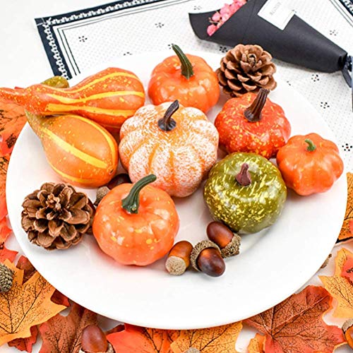 TheStriven 100 Pezzi Kit per Decorazioni Autunnali di Halloween Mini Zucca Autunnale Artificiale Mini Zucche Foglie d'Acero Ghiande Artificiali Pigne per Ringraziamento Autunno Raccolta Puntelli
