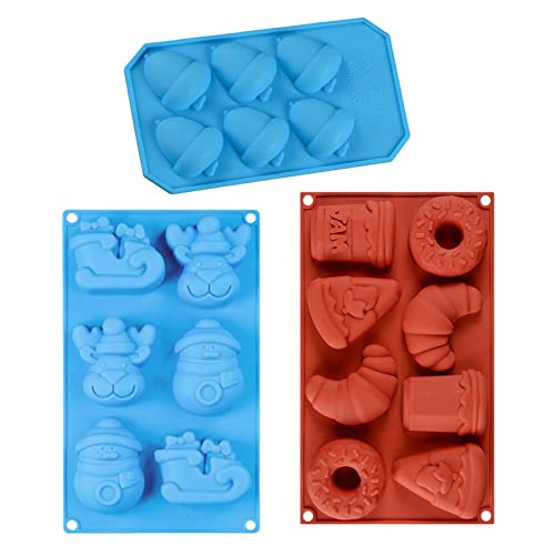 TheStriven 3 PCS Stampi in Silicone con Motivi Natalizi Stampo in Silicone Antiaderente per Torta Stampo per Dolci in Silicone Stampo in Silicone per Dolci A Forma di Natale A Tema a Forma di Pupazzo
