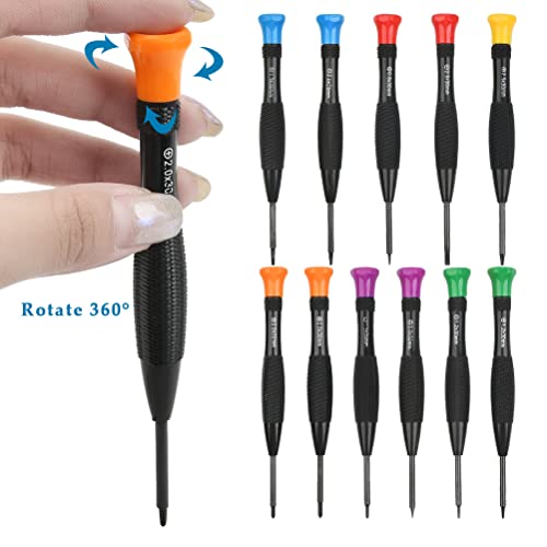 ✍【Set Completo di Strumenti di Riparazione】: questo set comprende un sacchetto di flanella e 11 cacciaviti di precisione di diverse dimensioni. Esistono cacciaviti Phillips da 0,8 mm, 1,2 mm, 1,5 mm, 2,0 mm, 2,5 mm e 2,0 / 3,0 mm (inclusi) e cacciaviti a testa piatta da 1,2 mm, 1,5 mm, 2,0 mm, 2,5 mm, 3,0 mm.