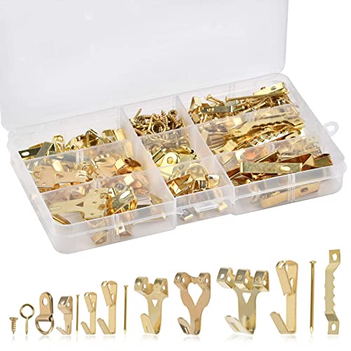 THETHO 266 PCS Ganci per Quadri Dorati Ganci, Kit per Appendere Cornice in Metallo Ganci per Cornice con Ganci, Chiodi, Anello a D, Anello Triangolare e Vite, Ganci a Parete Cornici sospese Ganci
