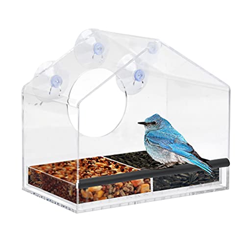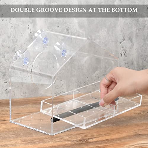 THETHO Mangiatoia per Uccelli Trasparente con 3 Ventose Alimentatore per Uccelli Acrilico Casetta per Uccellini da Giardino Dispenser Esterno per Uccelli Selvatici