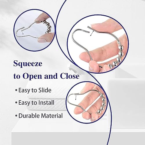 Thgtao Shower Curtain Hooks - Set di 24 anelli per tenda da doccia, in acciaio inox, con sistema a sfera per Shower Curtain Rail (argento)