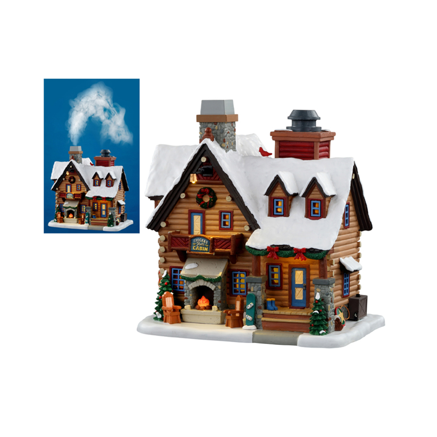 Crea il tuo villaggio di Natale con le decorazioni Lemax e apri le porte di casa tua alla magia e alle musiche del Natale. Finemente decorate e curate nei minimi dettagli, le decorazioni natalizie Lemax contribuiranno a rendere speciale la tua casa, tra la gioia di grandi e piccini. Questa decorazione rappresenta una meravigliosa baita con del fumo che esce dal camino. Con luci che si illuminano, si alimenta tramite presa di corrente o 3 batterie AA (non incluse). Collezione: Vail Village. Dimensioni: 22 x 17 x 22,5 cm.
