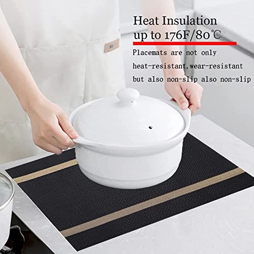 Thickoad Tovagliette,Tovagliette Americane Lavabili,Set di 6 Tovagliette Da Tavolo In PVC,Antiscivolo,Resistenti Al Calore,Adatto Per Tavolo Da Pranzo E Cucina (Nero)