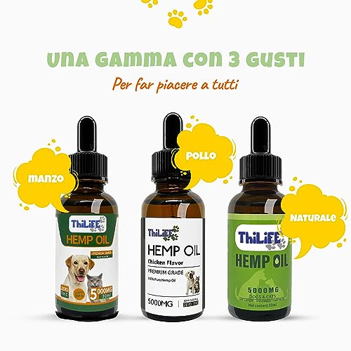 THILIFE Olio di Canapa Calmante per Cani e Gatti |-5000 mg-30 Ml |con Omega 3 6 9 y Vitamine per Animali Domestici. Antistress, Tranquillante, Antidolorifico, Riduce l'Ansia e Migliora Il Sonno
