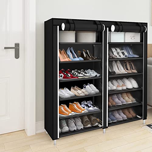 THINFAR Armadio in Tessuto, Guardaroba Portatile con Barre di Sospensione, Appendiabiti- Armadio Pieghevole Guardaroba in Tessuto (120 * 30 * 110cm Nero)