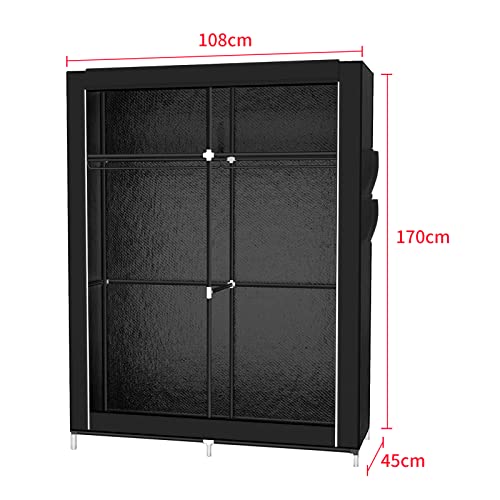 THINFAR Armadio in Tessuto, Guardaroba Portatile con Barre di Sospensione, Appendiabiti, Pieghevole, per Oggetti Personali, Vestiti, Scarpe, Giocattoli e Libri (108 * 45 * 170cm noir)