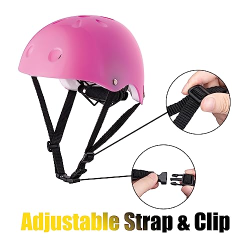 Elegante set 7 in 1 per bambini con casco, ginocchiere e gomitiere, disponibile in rosa brillante o blu, include un casco di sicurezza regolabile per bambini (adatto per dimensioni della testa 50-59 cm/19,6-23,3 pollici) da 6 a 15 anni (a seconda delle dimensioni della testa), ginocchiere per bambini, gomitiere per bambini e polsiere per bambini per una protezione completa durante la maggior parte degli sport all'aria aperta.