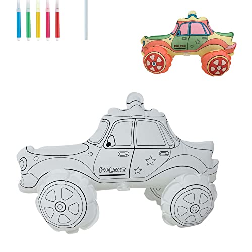Fun Arts & Craft Attività: tutto il necessario per godere di questo giocattolo per bambini è incluso nella confezione. Questo include le 4 Blow-Up Cars, 2 set di pennarelli (10 penne in totale) e la cannuccia d'aria per gonfiare i giocattoli una volta colorati.