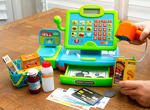 Think Gizmos Registratore di Cassa Interattivo per Bambini - Registratore di Cassa Giocattolo con Soldi Finti - Scanner - Alimenti e Carrello Spesa Giocattolo a Cestino - TG802