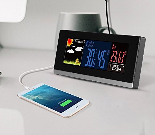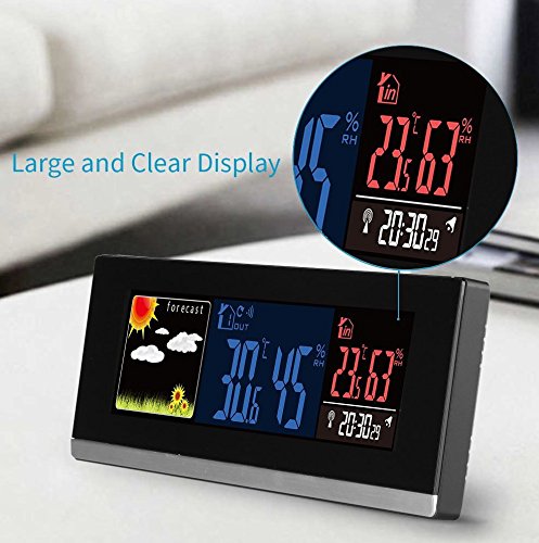 Think Gizmos - Stazione metereologica atomica senza fili con sensore per interno ed esterno - Stazione meteo con display a colori sveglia con avvisi temperatura e previsioni del tempo.