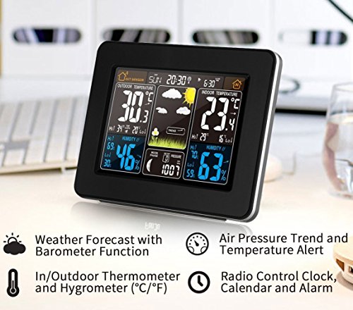 ThinkGizmos Stazione meteorologica wireless atomica con sensore wireless interno con sveglia a colori e avvisi di temperatura Largo