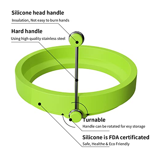New Thinking - Anello per uova / stampo per pancake, in silicone Stampo per cottura pancake antiaderente, anello in silicone con manico, confezione da 4. Green
