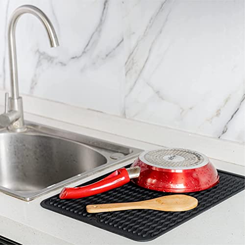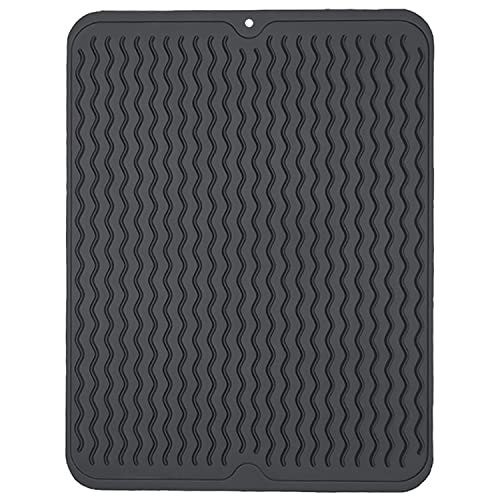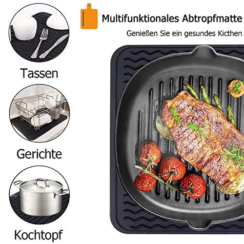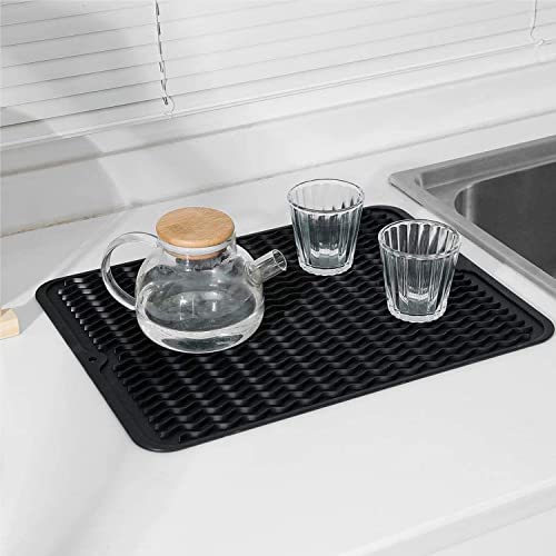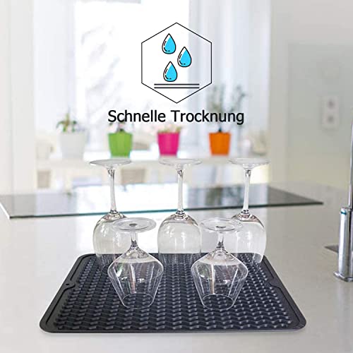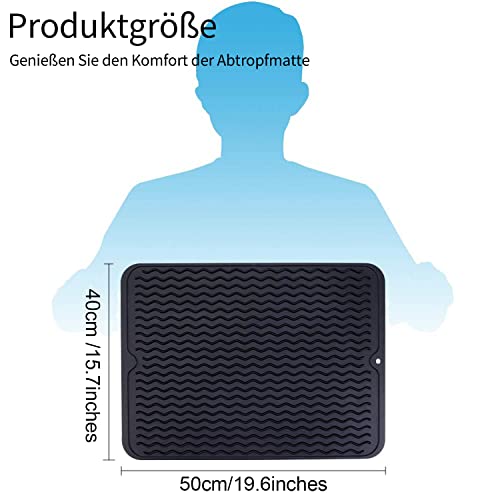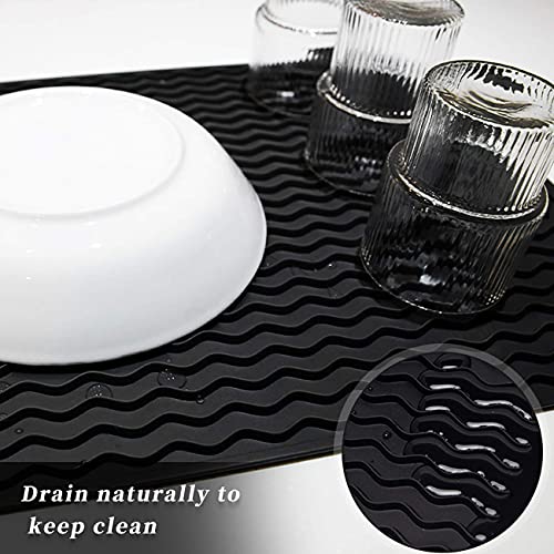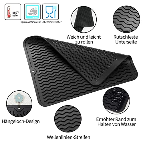 Thinkingwings Tappetino scolapiatti in silicone, 50 x 40 cm, ecologico, resistente al calore e antiscivolo, tappetino scolapiatti (nero)