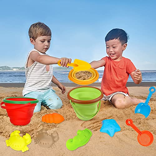 ThinkMax 11Pcs Giocattolo della Spiaggia per i Bambini, Spiaggia di Sabbia Playest Insieme Include Pieghevole Secchio, Stampi Animali, Pala Sabbia Kit Strumenti (11pcs)