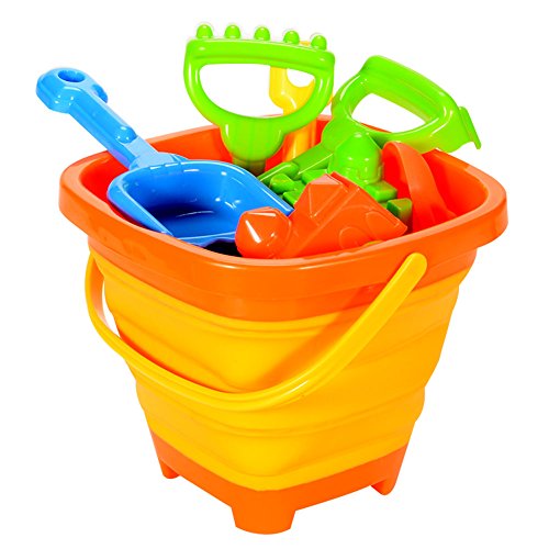 ThinkMax Giocattolo della Spiaggia per i BambiniGiocattolo della Spiaggia per i Bambini, 2 Pezzi Benne Pieghevoli con Pala e rastrello, Giocattoli di Sabbia da Spiaggia all'aperto