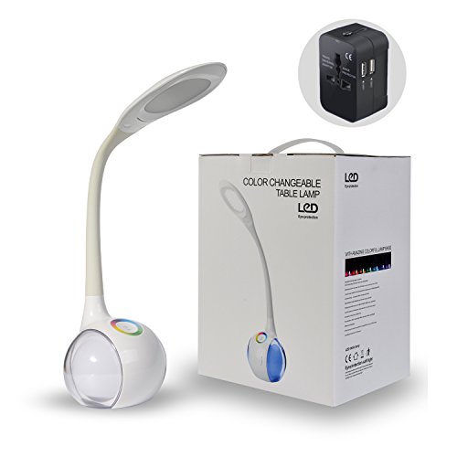 THINKMORE Lampada da scrivania, con LED RGB, 5 W, 700 lux, 5500 K, bianco neutro, 256 colori che cambiano, comandi tattili con 3 livelli di intensità luminosa, struttura flessibile a collo di cigno