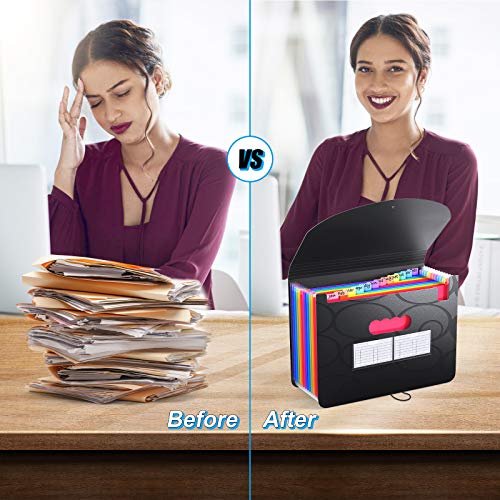 ThinkTex Accordian File Organizer, 12 Tasche che Espandono le Cartelle di File, Organizzatore Portatile di Ricevute Mensili di Bollette, Schede Colorate, Formato Lettera/A4