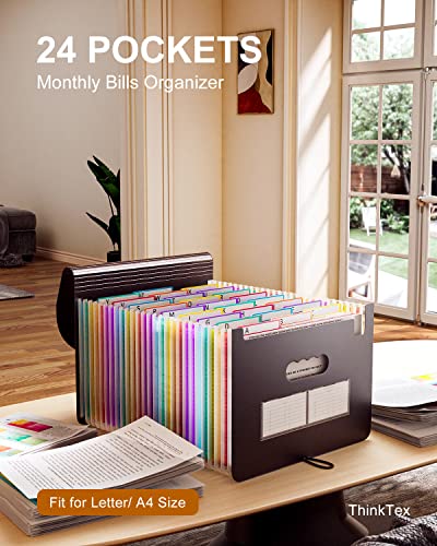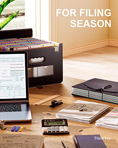 ThinkTex Cartella Portadocumenti A4 con Coperchio, Cartelle Per Archiviare Documenti con 26 Tasche, Raccoglitori Soffietto Espandibile Faldoni, Plastica Multicolore