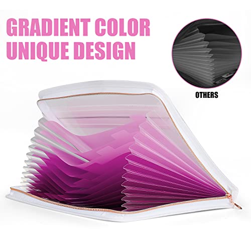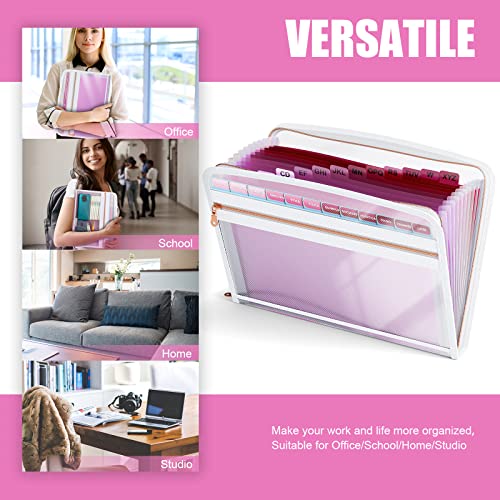 ThinkTex Cartella Portadocumenti Espandibile con Cerniera, 13 Tasche,a Fisarmonica Espandibile, con Etichette Adesive e Porta Tasca Frontale per Fisarmonica,Formato A4,per Casa,Scuola (Rose)