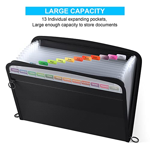 ThinkTex 13 Tasche Cartella Portadocumenti,Cartella Porta Documenti a Scomparti A4,Fisarmonica Porta Documenti Espandibile,Raccoglitore Documenti Impermeabile con Scomparto con Cerniera (Nero)