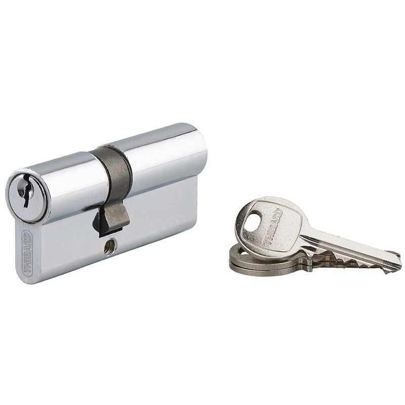 Profilo Euro in alluminio. Meccanismo a 5 pin. Nottolino antisfilamento. 3 chiavi in acciaio nichelato