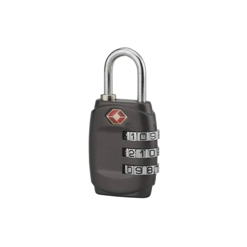 Lucchetto 30 con lucchetto a combinazione TSA 3 bulloni. Descrizione Corpo in lega fusa. Manico in acciaio nichelato. Meccanismo a rulli. Lucchetto a combinazione intercambiabile. Finitura Colori abbinati Versione Con cavo d'acciaio. Ø 3 mm lungo. 125 mm. Usa Bagagli
