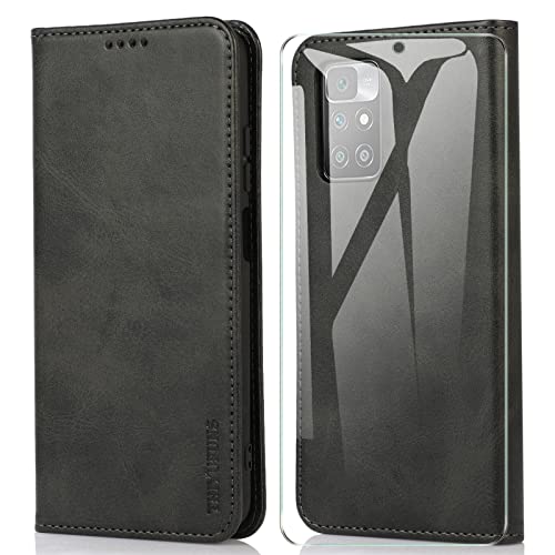 THIYUFUNS Cover a Libro in Pelle Xiaomi Redmi 10 con Vetro Temperato,Custodia PU Portafoglio Flip Magnetica Wallet Per Xiaomi Redmi 10 - Nero