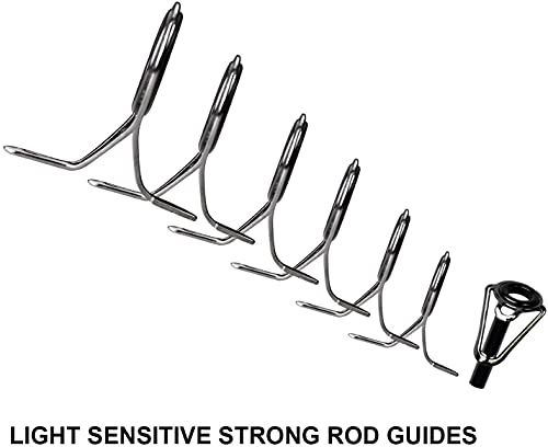 Guide per aste resistenti alla luce: con telaio in acciaio inossidabile e anello in ceramica resistente all'usura, robusto e durevole. Rende la tua canna da pesca sensibile alla luce e forte. I guidacanna leggeri rendono la canna da pesca più sensibile ed estremamente confortevole e leggera.