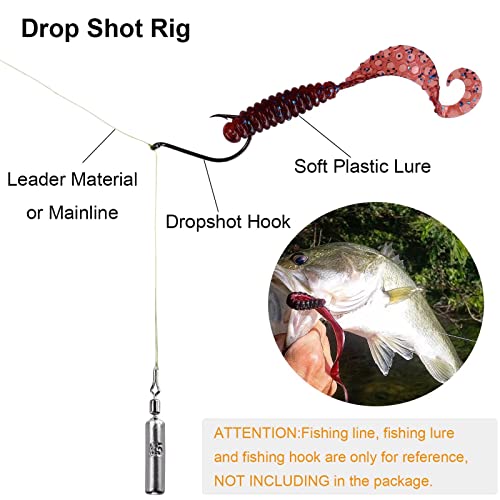 PESI DA PESCA MERAVIGLIOSI: I pesi Drop Shot saranno un'aggiunta eccellente a qualsiasi cassetta terminale. Materiale: piombo e acciaio inossidabile. Nel set è inclusa una sola taglia. Sei taglie: 1/8 oz (3,5 g), 1/5 oz (5 g), 1/4 oz (7 g), 3/8 oz (10 g), 1/2