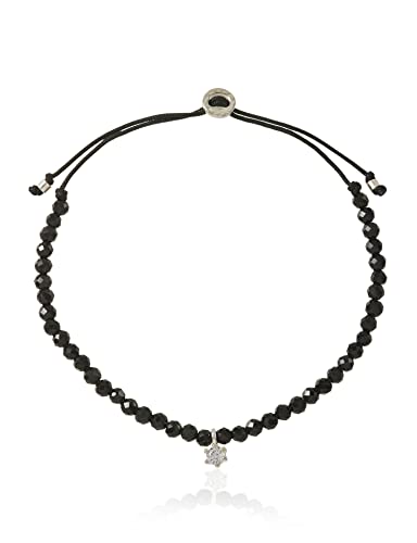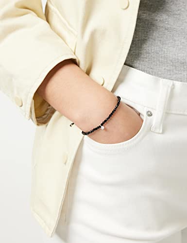 Thomas Sabo Braccialetto con Perle Nere e Pietra Bianca in Argento Sterling 925, Lunghezza 13 - 20 cm
