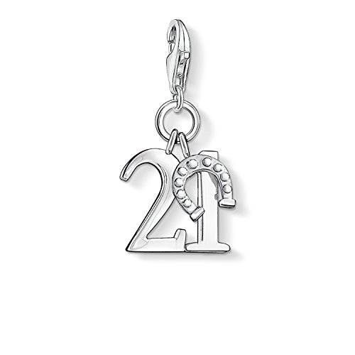 Thomas Sabo Charm Club Ciondolo da Donna, Argento 925, Numero Portafortuna 21 Con Ferro di Cavallo