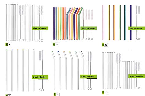 Si tratta di un set di 12 cannucce in vetro. Il diametro delle cannucce è di 10 mm, 6 cannucce lunghe 21,5 cm e dritte e 6 cannucce sono 15 cm e dritte. Questo include 4 spazzole per la pulizia.
