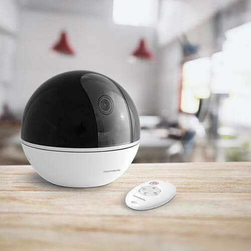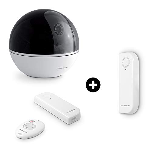 Thomson 512501 - Telecamera per interni, installazione"Plug&Play", semplice e veloce con l'aiuto del QRCode, scheda microSD inserita (non inclusa)
