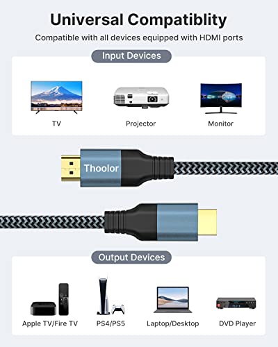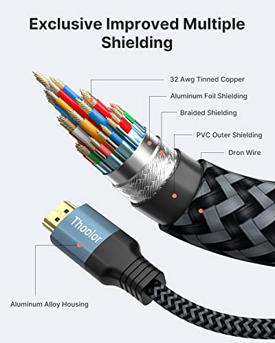 Thoolor Cavo HDMI 4K 3 Metri, Cavo HDMI 2.1 con Ethernet, Supporta 4K 60Hz HDR, 2K 1440P 144Hz, 1080p, HDCP 2.2, 3D, Compatibile con Monitor Smart TV PC PS5 PS4 Xbox Blu-ray