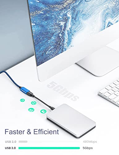 【Trasmissione dati ad alta velocità】Il cavo USB 3.0 supporta una velocità di trasferimento dei dati fino a 5 Gbps, 10 volte superiore a quella dell'USB 2.0. Può trasferire filmati HD, foto HD e altri documenti di grandi dimensioni in pochi secondi.