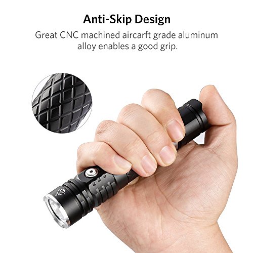 Ben costruito: realizzato in alluminio aeronautico con finitura anodizzato duro militare HAIII, design resistente all' acqua e antiscivolo, la luce è buona per ispezione Heavy Duty, sicurezza, campeggio, trekking, ciclismo e di emergenza.