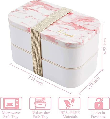 Thousanday Bento Lunch Box | Ermetico Scatola Bento con 2 Strati Separati | Microonde e Lavastoviglie | 1.6 Litri(Rosa)