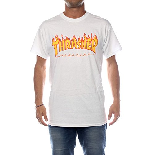 Thrasher, t-shirt - logo con fiamme bianco Large
