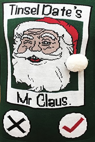 Threadbare - Pullover lavorato a maglia, tema: natalizio, per adulti Tinsel Dates - Date, colore: Verde Taglia-L-107 cm- 112 cm Petto