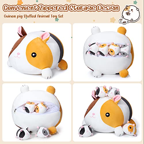 Design distintivo: la pancia del peluche di cavia ripiena della mamma è progettata con una cerniera, che può ospitare 4 peluche di porcellino d'india di diversi colori, comoda per la conservazione
