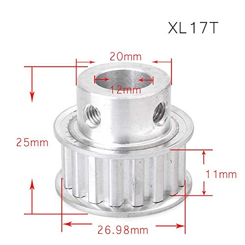 Three T - Puleggia per cinghia dentata, 12 mm, foro 17 denti, XL17T per stampanti 3D CNC, larghezza 10 mm