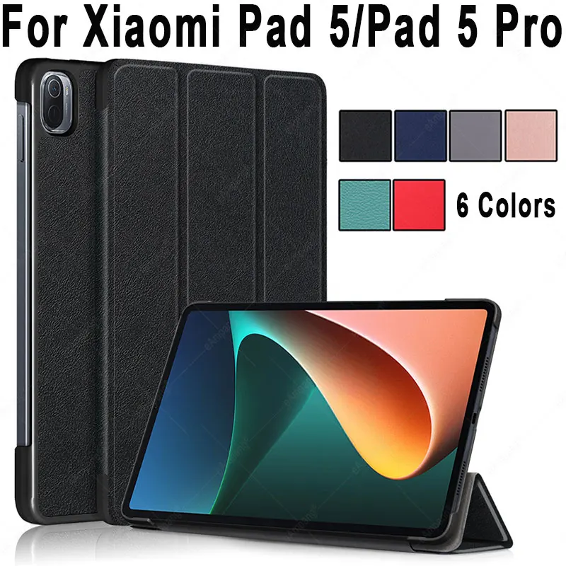 Three Fold Stand Case For Xiaomi Pad 5 Cover With Smart Sleep Wake Protective shell For Xiaomi Mi Pad 5 Pro Leather Flip Case
